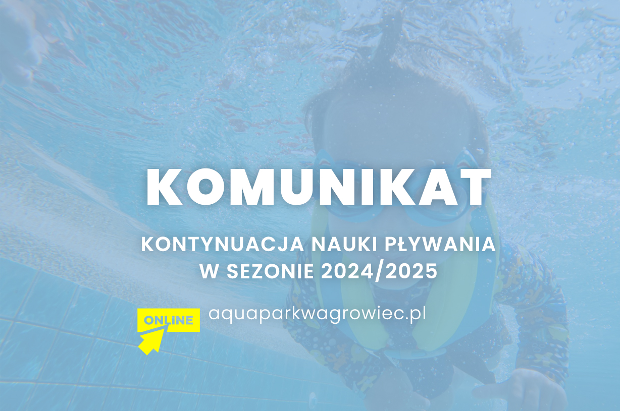 Uprzejmie informujemy Rodziców, których dzieci uczestniczyły w grupowych zajęciach nauki pływania w roku 2023/2024 w Aquaparku Wągrowiec i chcą kontynuować naukę w nowym sezonie pływackim 2024/2025, o potwierdzenie poprzez formularz zgłoszeniowy, wybierając zakładkę: KONTYNUACJA - NAUKA PŁYWANIA sezon 2024/2025.