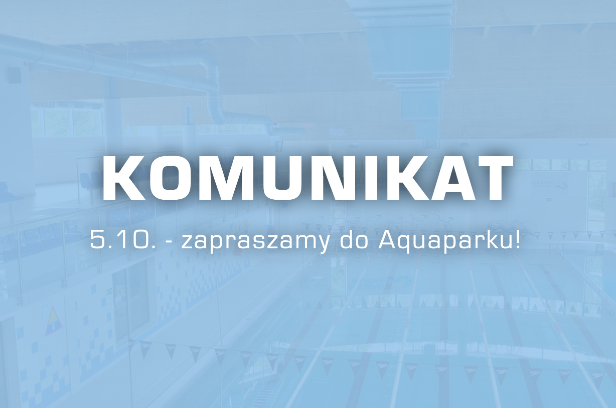 Szanowni Klienci,informujemy, że jutro (5.10.2023) Aquapark będzie już otwarty jak zwykle, w godz. 6:30 - 21:30.