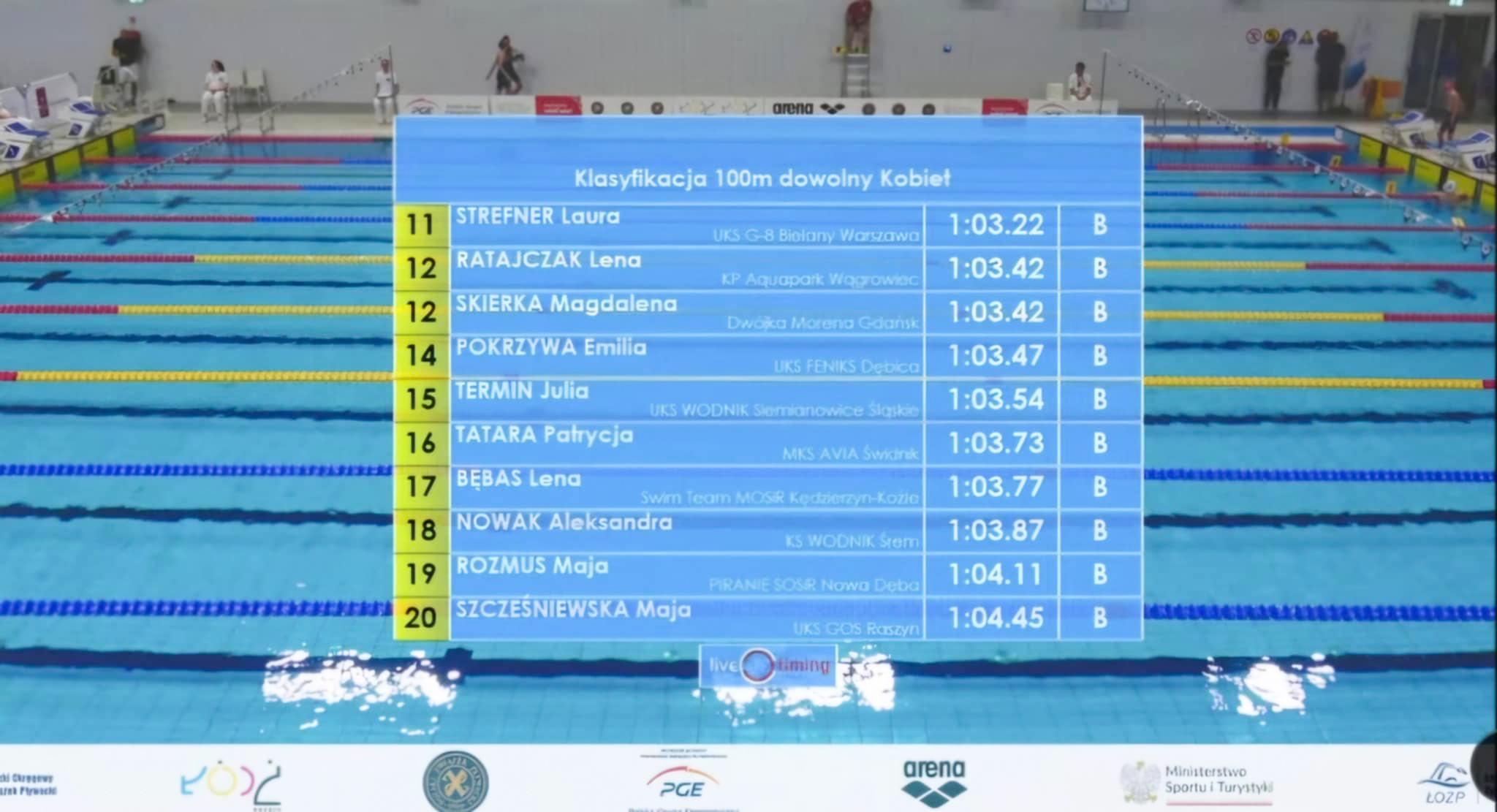 Eliminacje do drugiego koronnego dystansu Leny - 100m stylem dowolnym - odbywały się w niedzielę. Nowy rekord życiowy uzyskany w eliminacjach (1:03.42) pozwolił Lenie na awans do Finału B. Nasza zawodniczka uzyskała czas 1:03.15 i zajęła ostatecznie 16. miejsce.