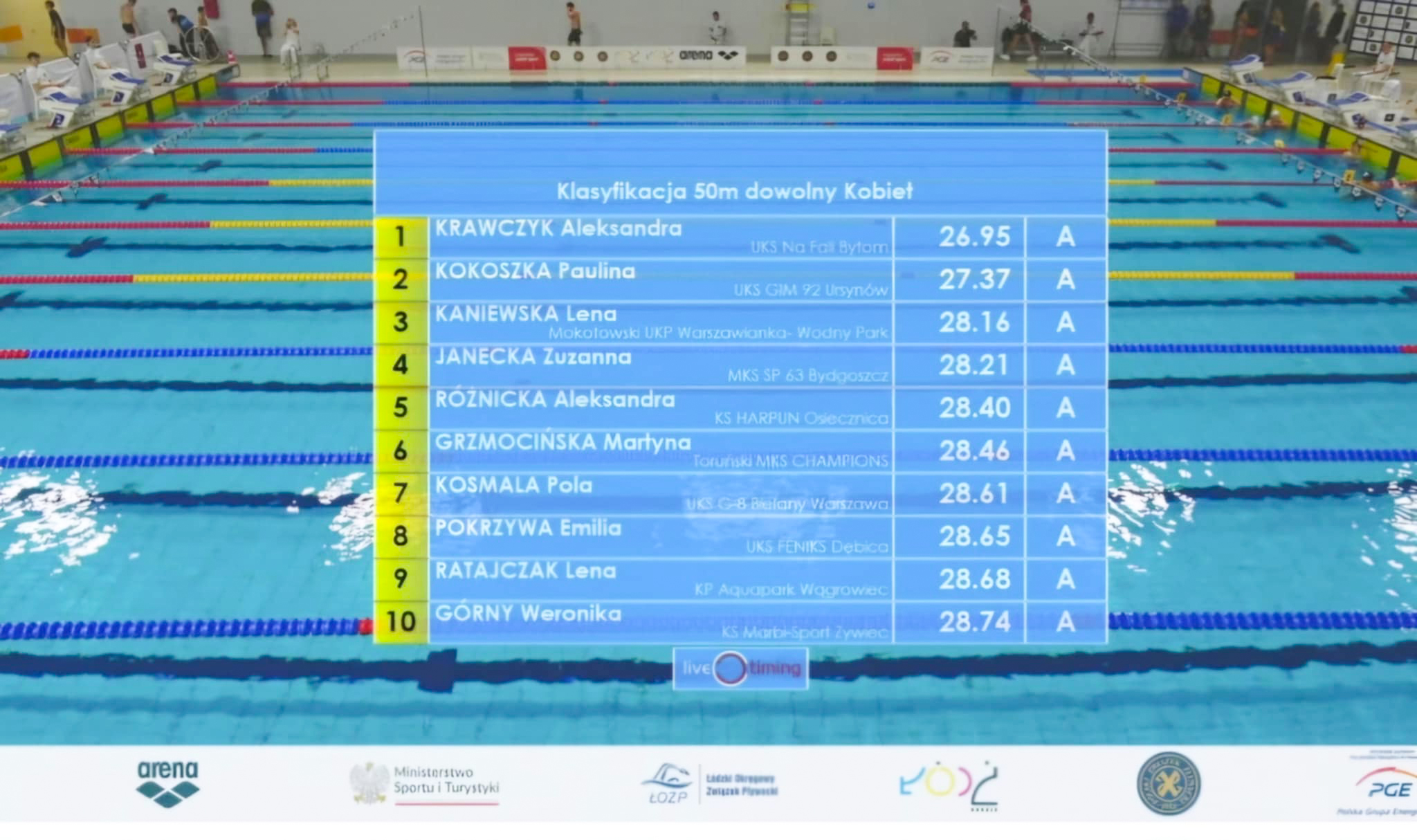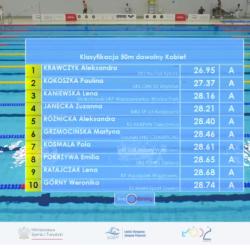 Pierwszy start Leny to jej ulubiona konkurencja - 50m styl dowolny. W eliminacjach uzyskała świetny czas - 28.68s bijąc swój poprzedni rekord życiowy o prawie 0.5 sekundy, dzięki czemu awansowała z nim do wymarzonego Finału A. W samym finale znowu pobiła rekord życiowy uzyskując czas 28.60, co pozwoliło jej zająć 10. miejsce w Polsce!