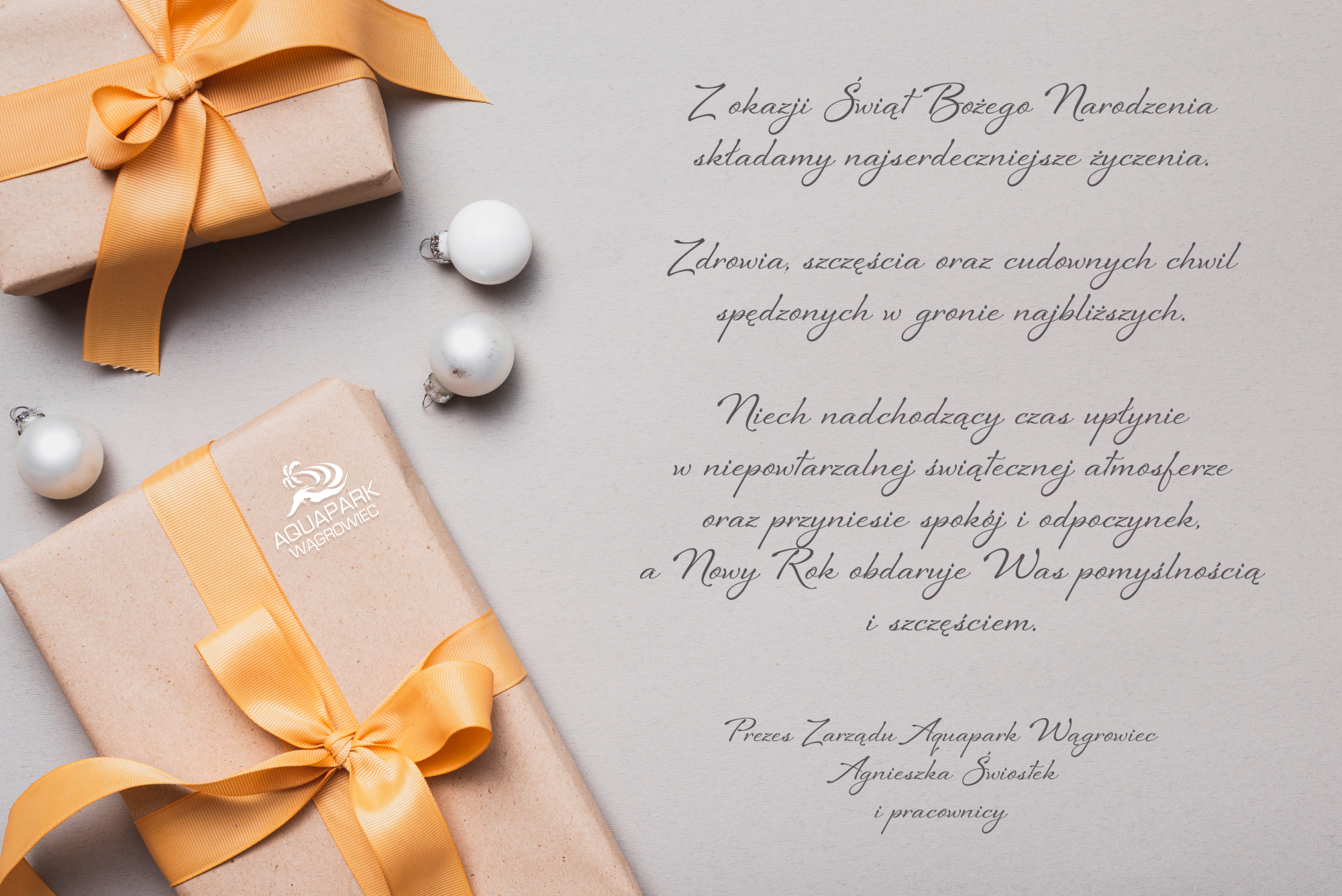 Niech nadchodzący czas upłynie w niepowtarzalnej świątecznej atmosferze oraz przyniesie spokój i odpoczynek, a Nowy Rok obdaruje Was pomyślnością i szczęściem.